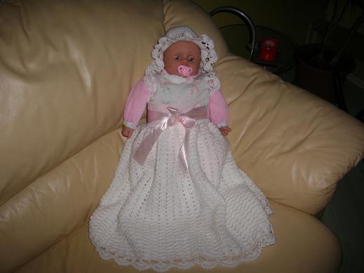 Teremi, specjalnie na Twoje życzenie, trochę mojej prywaty, wklejam ubranko do chrztu, które sama zrobiłam (moja pierwsza praca na szydełku). A teraz szybko zaczęłąm robić drugie, bo w K-R nastała moda na bliźniaki.
