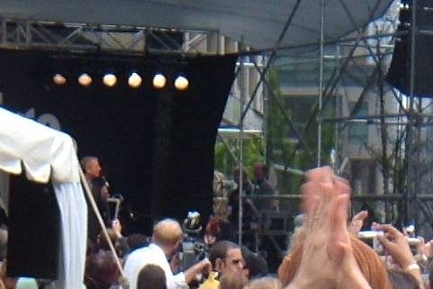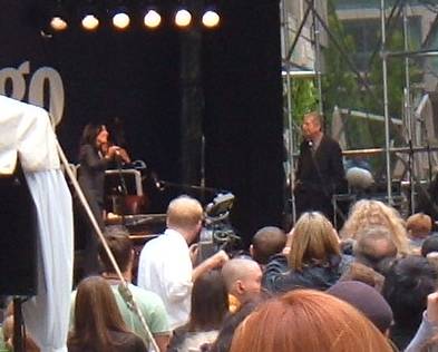 Bardzo chcialm go zobaczyc. Nie spodziewalam sie, ze zaspiewa. Przed ksiegarnia w ktorej mialo sie odbyc spotkanie ustawiono scene i instrumenty. Najpierw wystapila Anjani. Obok niej, gdzies w glebi sceny siedzial Cohen zasluchany...