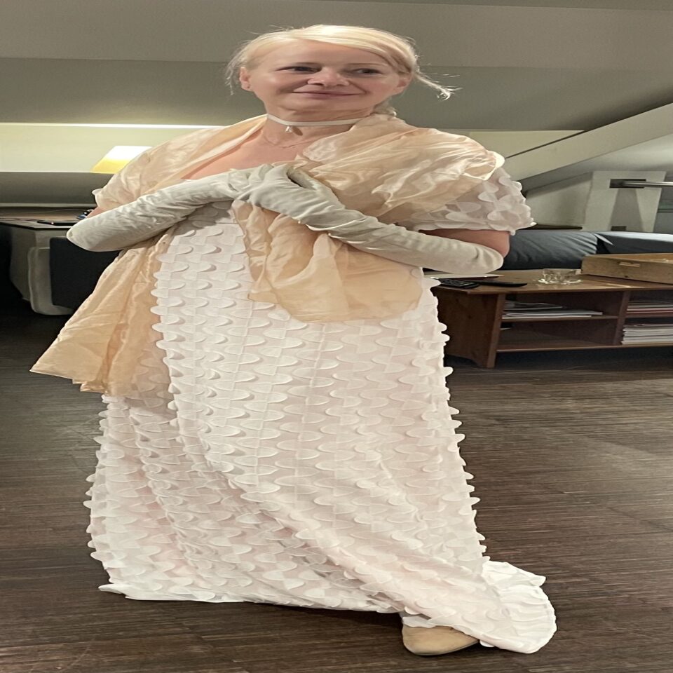 Moja próżność była jednak tak pogłaskana, że się oczywiście z rozkoszą zgodziłam. Potem obserwowałam, jak panie pracowały i muszę przyznać, że nikomu tego nie życzę, bo pracowały jak dwie krawcowe w furii. Moje drogie przyjaciółki wyszły od detalu i tkały to przedstawienie szczegół po szczególe. Jak taka krawcowa, którą pamiętam z lat dzieciństwa, która nie robiła rysunku, tylko wkładała materiał na człowieka i szyła na nim rękaw po rękawie, falbankę po falbance. W efekcie powstało przedstawienie, z którego jako autorka byłam bardzo zadowolona.