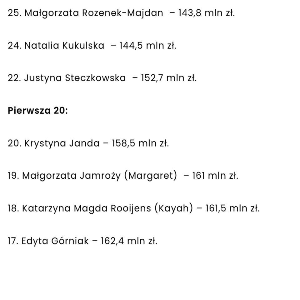 Podano ranking marek kobiecych osobistych. Jestem na 21 miejscu. Wartość 158 mln złotych.