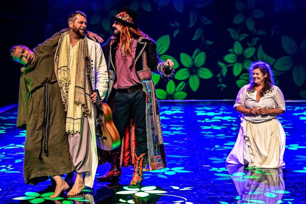 Świetnie radzi sobie Michał Jaros w roli typowego szekspirowskiego błazna Lakmusa, szydzącego z pozostałych bohaterów z dużym wdziękiem i lekkością. Przezabawny w bardzo udanym epizodzie głupawego pasterza Sylwiusza jest Jakub Nosiadek, który wcześniej dobrze prezentuje się również w roli zapaśnika Karola. Jako smętny bard-samotnik Jakub bawi publiczność bardzo dobry w każdym wejściu na scenę Maciej Konopiński, a w swoim stylu wieśniaczkę Anielę odgrywa Małgorzata Oracz.